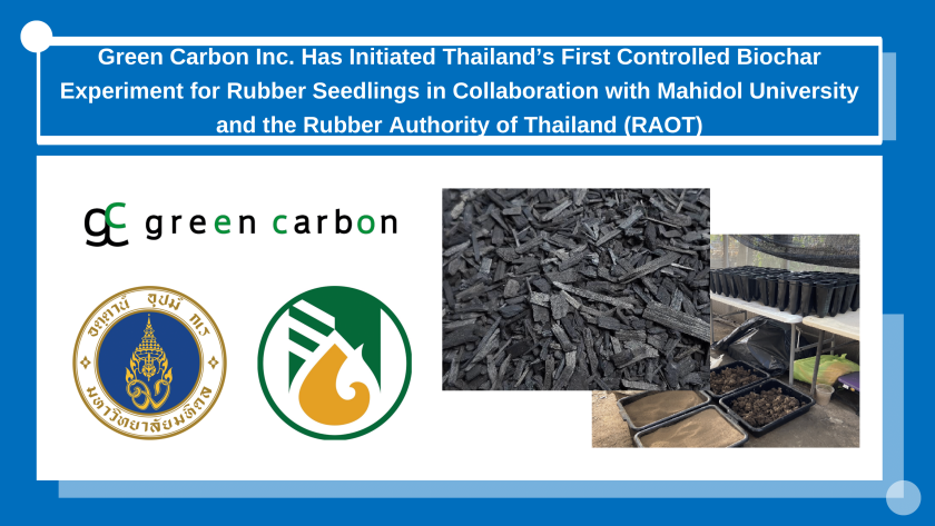 Green Carbon Inc. (CEO: Jun Okita, hereinafter “Green Carbon”) — a company engaged in the creation and sale of nature-based carbon credits — has officially initiated Thailand’s first controlled greenhouse experiment (hereinafter “the Experiment”) to evaluate the effects of biochar on the early growth of rubber seedlings. This initiative is being conducted in collaboration with Mahidol University and the Rubber Authority of Thailand (RAOT), which includes the Rubber Research Institute of Thailand (RRIT).