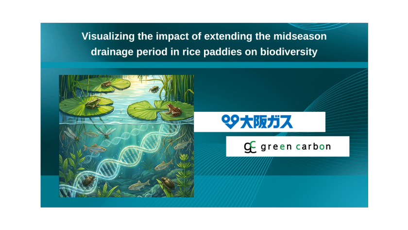 Green Carbon Inc. (CEO: Jun Okita, hereinafter “Green Carbon”), which develops a nature-based carbon credit generation and sales business, has announced that it has visualised the impact of Osaka Gas Co., Ltd. (President: Masataka Fujiwara, hereinafter referred to as Osaka Gas) extended midseason drainage period for paddy fields (※1) (※2) to reduce methane emissions, a greenhouse gas. This was achieved through a biodiversity impact survey using Environmental DNA (※3).