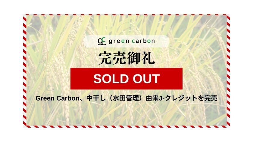 ネイチャーベースのカーボンクレジット創出・販売事業を展開するGreen Carbon株式会社(代表取締役:大北潤、以下Green Carbon(グリーンカーボン))は、「水稲栽培における中干し期間の延長」(※1)の方法論に沿って弊社が日本国内で創出したJ-クレジット 約6.5万tCO₂eが完売したことをお知らせいたします。