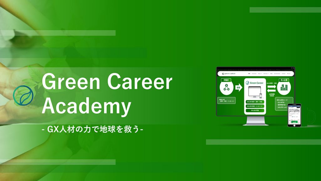 Green Career Academyは、GX(グリーントランスフォーメーション)領域に特化した人材育成・マッチングサービスです。脱炭素化の加速に伴い高まるGX人材ニーズに対し、新卒・中途・インターン人材の紹介と育成を通じて、企業の採用課題を解決します。GXを「人の力」で推進し、日本そしてアジアの脱炭素社会の実現を目指します。