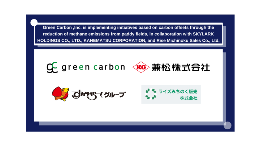 Green Carbon Inc. (CEO: Jun Okita, hereinafter “Green Carbon”), which develops a nature-based carbon credit generation and sales business, announces that it has, in collaboration with KANEMATSU CORPORATION (President: Yoshiya Miyabe), Rise Michinoku Sales Co., Ltd. (President: Hiroyuki Okumoto), the Hanamaki My Brand Study Group, and the Agricultural Cooperative Corporation Kizuna (collectively, the “producers”), realized the integrated supply of domestically produced rice and its associated environmental value to SKYLARK HOLDINGS CO., LTD. (President & Chief Operating Officer: Minoru Kanaya, hereinafter referred to as the Skylark Group) . This initiative (“the Initiative”) was carried out in accordance with the concept of carbon insetting (※1) at production fields located in Hanamaki City, Iwate Prefecture.