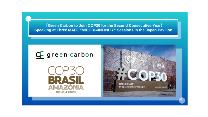 This year, Green Carbon will speak at three sessions of the Ministry of Agriculture, Forestry and Fisheries (MAFF)-hosted seminar “MIDORI∞INFINITY” within the Japan Pavilion, where the company will present its initiatives in climate action, overseas deployment of GHG reduction technologies, and partnerships with financial institutions. This release serves as the first announcement regarding our participation in COP30. Further updates and on-site reports will be shared as the event progresses.