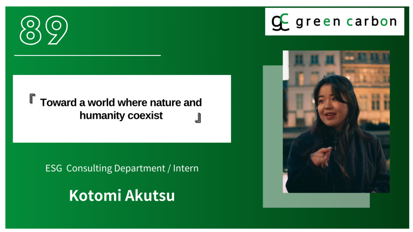 Name : Kotomi Akutsu Department/Position : ESG Consulting department Area of Expertise/Assigned Duties : sustainable related research and public relations University : International Christian University Major/Studies : Language Education/International Relations Reason for Joining Green Carbon…