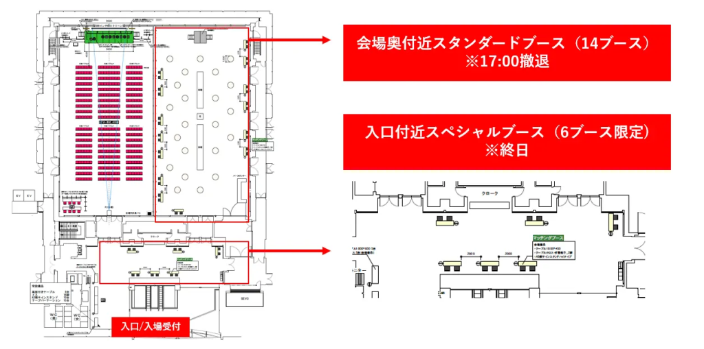 本Forumのブース出展エリアは、入口付近のスペシャルブースと会場奥付近のスタンダードブースの2か所に分かれます。